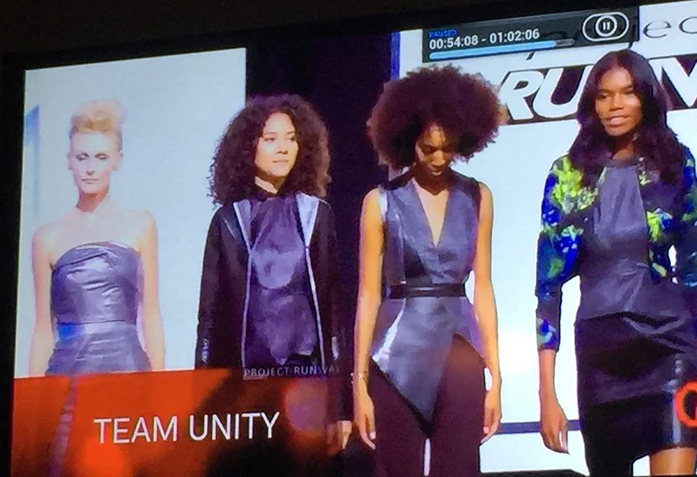Team Unity’s collection ended up being an over designed group with a boring color palette and came across as evening wear instead of business wear. The judges had a lot of negative comments and they ended up being the losing team.